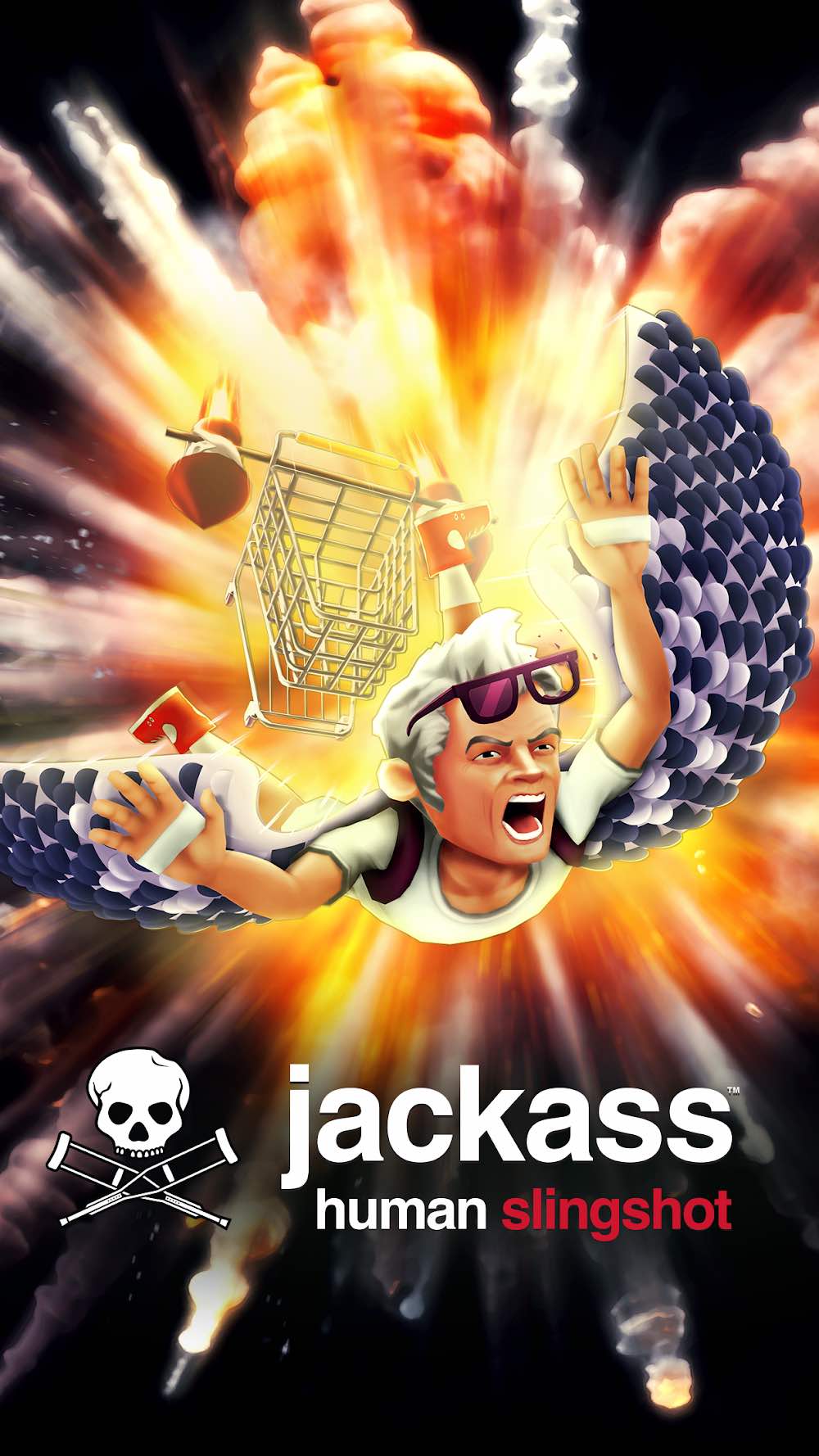Jackass Human Slingshot, insanları mancınık ile fırlatacağınız ve en yüksek puana ulaşmaya çalışacağınız komik ve keyifli bir mobil oyundur. Oyunda amacınız mancınık ile alışveriş sepetinin içinde duran kişiyi olabildiğince uzağa fırlatmak. Bunun için alışveriş sepetine havada süzülmesi için gereken bazı eklentiler yapıyorsunuz. Benzinle çalışan mini roketler sayesinde mancınıkla fırlattığınız kişi çok daha uzun mesafeye düşebiliyor. Oyunda ne kadar uzun atış yaparsanız o kadar fazla para ödülü kazanacaksınız. Kazandığınız paralarla alışveriş sepeti yerine farklı araç görünümleri satın alabilirsiniz. Ayrıca 3 farklı geliştirme türünü tamamlayarak fırlatma mesafesini ve mancınığın gücünü arttırabilirsiniz. Ana menüye geldiğinizde Launch, Fuel ve Bonus şeklinde 3 farklı geliştirme başlığı göreceksiniz. Launch geliştirmesi mancınığın gücünü arttırarak ilk çıkış hızını yükseltiyor. Fuel geliştirmesi roketlere daha fazla benzin koymanızı sağlıyor. Bonus ise oyunda değilken para kazanmanıza olanak veriyor.