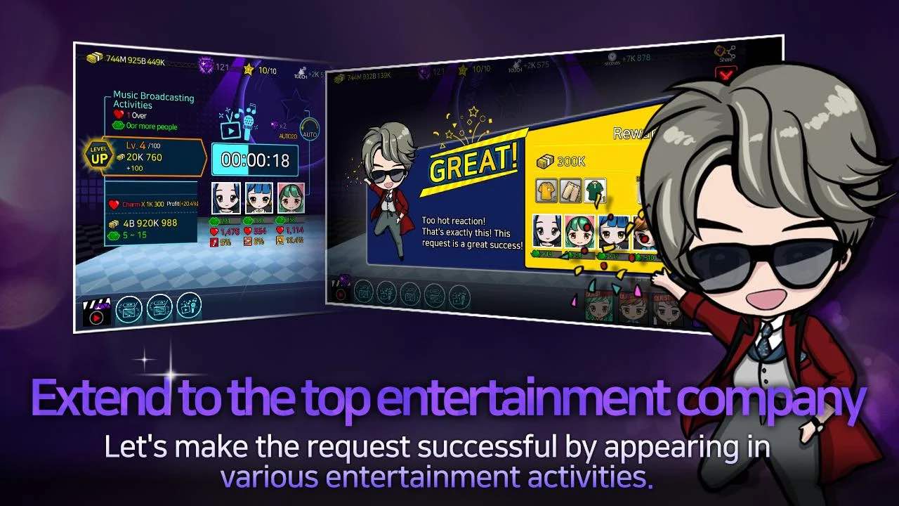 Idol Stage oyununda ekranın sağ tarafında “CEO’s BONUS” adında bir bölüm göreceksiniz. Burada ajansta CEO olmanız sayesinde elde edilen ekstra özellikler yer almaktadır. Ekstra özelliklerin sayısını ve bu özelliklerin yüzdelerini arttırabilmek için yine para harcayarak geliştirmeler yapmanız gerekiyor. Oyunda toplam paranızı ve ajansınızda bulunan tüm sanatçıları ekranın sol köşesinde görüntüleyebilirsiniz. Yegenlerim, eğer siz de yeni sahne sanatçılarını yetiştirerek para kazanmaya çalışacağınız ve bir ajans sahibi olacağınız bu eğlenceli yapımı denemek isterseniz Idol Stage elmas hileli apk’yı telefonunuza indirebilirsiniz. Bu apk dosyası sayesinde oyunda bolca süre kazanmanızı sağlayacak elmasları elde edebileceksiniz. Şimdiden hepinize iyi oyunlar diliyorum, görüşmek üzere!