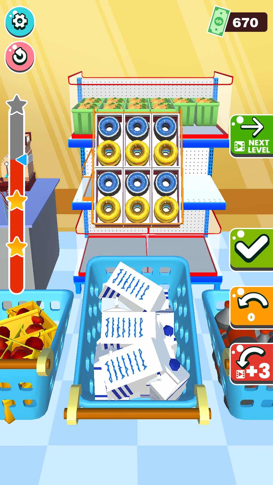 Fill The Store: Restock, süpermarkette çalışacağınız, temizlik, düzenleme vb. gibi işleri yaparak görevleri tamamlamaya çalışacağınız eğlenceli bir mobil oyundur. Oyunda amacınız marketteki reyonları düzenlemek, ürünleri kategorilere göre ayırmak ve sepetteki ürünleri kasadan geçmektir. Gün içerisinde sıkıldığınızda oyalanacak bir oyun arıyorsanız Fill The Store: Restocktam size göre bir yapım. Hiç canınız sıkılmadan keyifle ve saatlerce oynayabileceğiniz, bir yandan da düzenleme görevlerini yaparken rahatlayacağınız çok eğlenceli bir oyunla karşı karşıyasınız. Oyunda herhangi bir ürünün üzerine basılı tutarak sürükleyebilir ve doğru noktalara bırakabilirsiniz. Eğer bir ürünü doğru reyona yerleştiremediyseniz üzerinde kırmızı renkte işaretler belirecektir. Bu işaretler yeşile dönerse ürünü doğru yerleştirdiniz demektir.